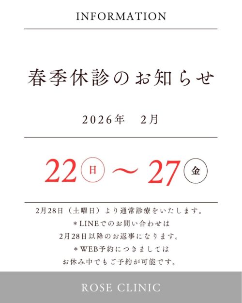 休診期間中はお電話・LINEでのご予約対応もお休みとなりますので、2 月8 日(土)以降にお願いいたします。