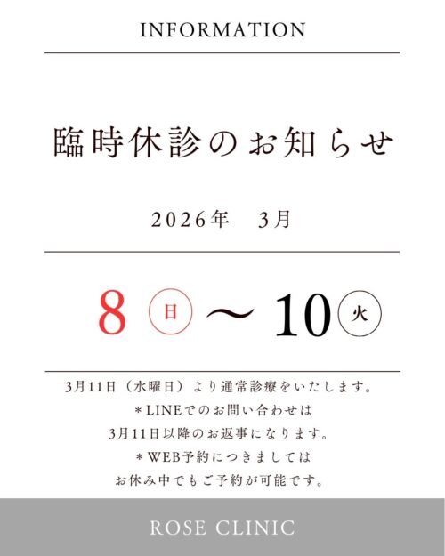 休診期間中はお電話・LINEでのご予約対応もお休みとなりますので、3 月11 日(水)以降にお願いいたします。